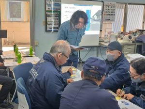 今回の講習内容にはKYTトレーニング研修が組み込まれ、グループディスカッション形式で各自事故防止策を発表していただく構成となっており、